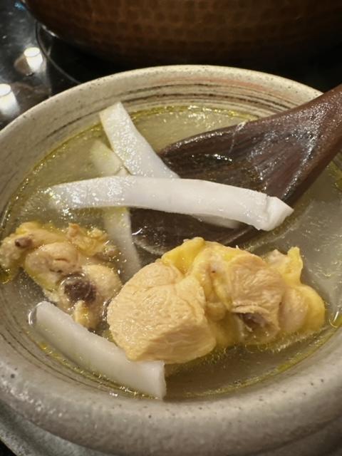 侍應溫馨提示可以先飲碗湯,食件雞,然後先開始火鍋。啖湯有椰子嘅清甜味,而雞件都帶有雞肉味。