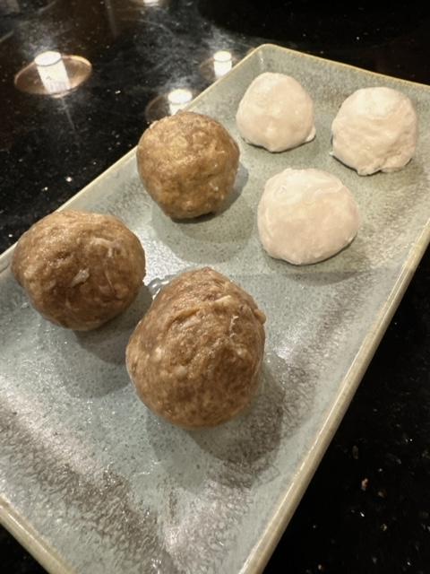丸類可以雙拼,就算人少都可以試多款。今晚嚟個手打鮮墨丸拼潮州牛丸 ($78),每款3粒。