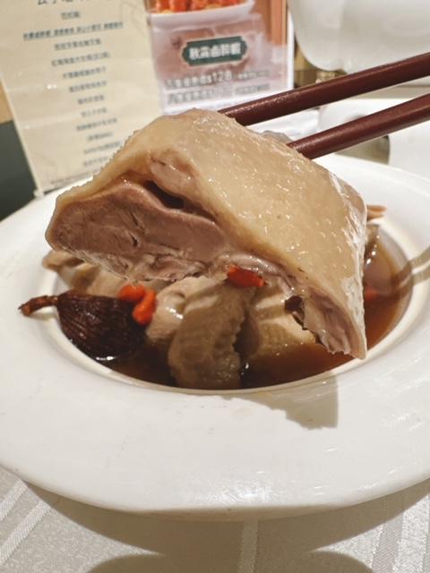 入口涼感,乳鴿浸得幾入味,唔會太濃酒味,肉質幾嫩,咁嘅煮法好岩呢個天氣食。
