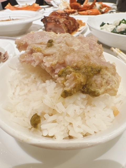 肉餅放底吸盡蟹嘅精華,仲”沾”咗D蟹膏,入口食到馬蹄嘅爽脆及冬菇粒,唔濃味,用黎送飯超岩數。
