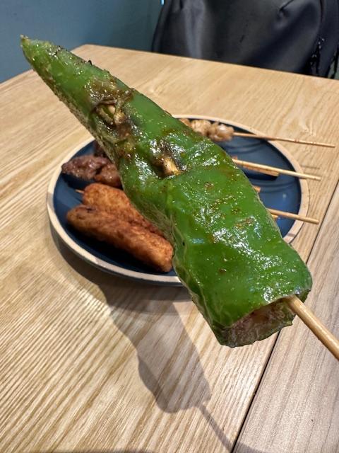 原隻上嘅虎皮青椒,成支竹籤咁大隻嘅都少見,入口有D辣度,好彩都食到。