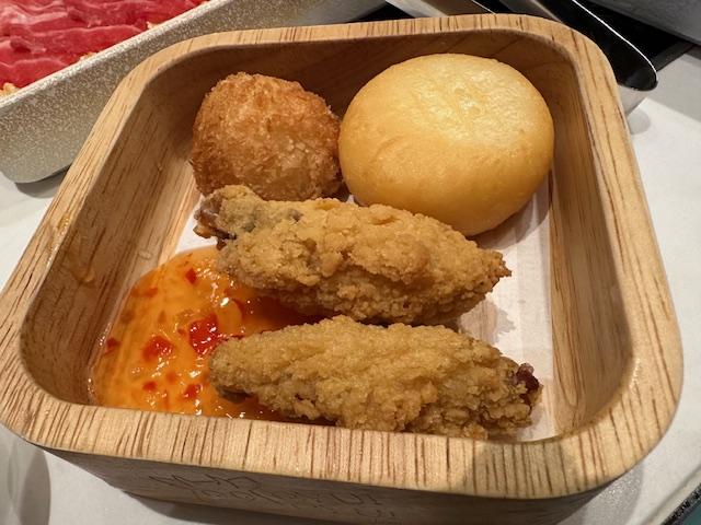 仲有炸物,有我最愛嘅芝士年糕及榴槤皇炸彈,單骨鷄翼比美外面買到嘅水準,欣賞佢全部炸物都係熱辣辣。芝士年糕再要黎多轉呀唔該。
