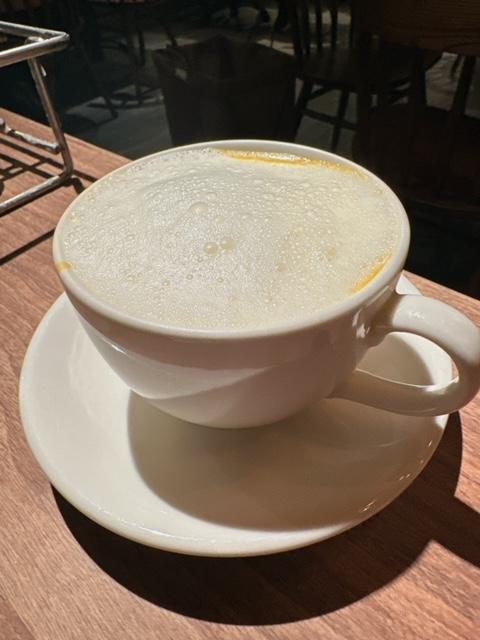 甜品時間要配咖啡,呢杯鮮奶咖啡 ($40)唔會太過濃驚影響睡眠,一啖梳乎厘班戟,呷一口咖啡,感覺相當唔錯。