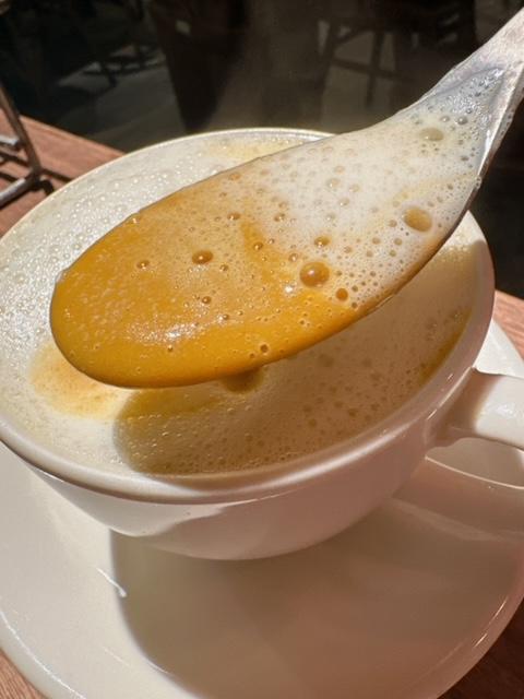 熱度十足,最歡喜飲熱湯。口感細滑,純飲到南瓜嘅甜味,好好飲。當飲熱飲咁,無需用匙都得。