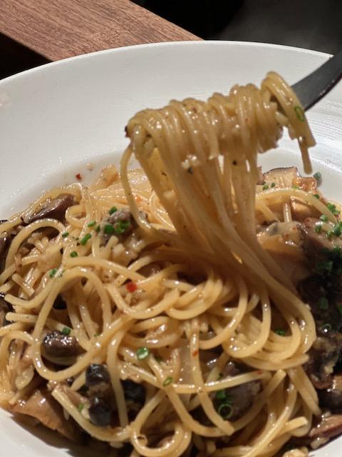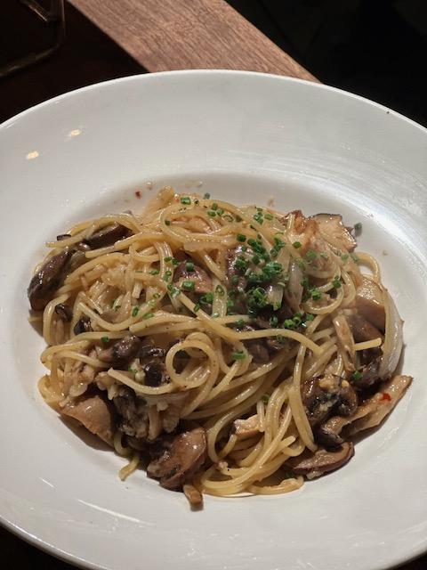 另一客蒜香雜菌意粉 ($96)都唔過百,份量絶對唔少,簡單材料只有雜菌及蒜粒。
