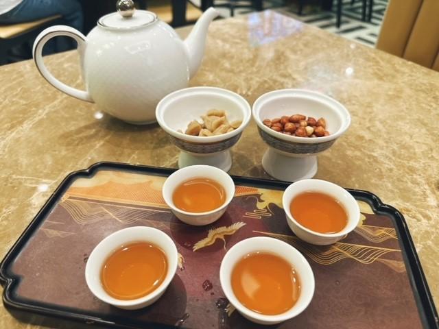 安排坐卡位,夠寬敞舒適,侍應先送上功夫茶作welcome drink,仲有菜脯及脆花生作小食。