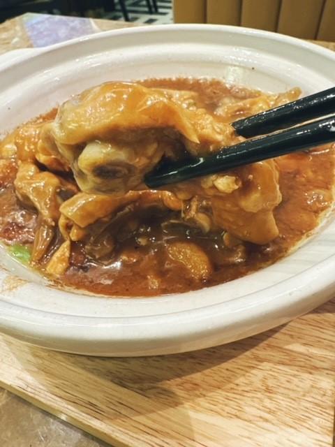 邊位煎得金黃香脆,中間部份滿佈蠔仔,隻隻都飽滿,沾D魚露加胡椒粉趁熱食,正正。